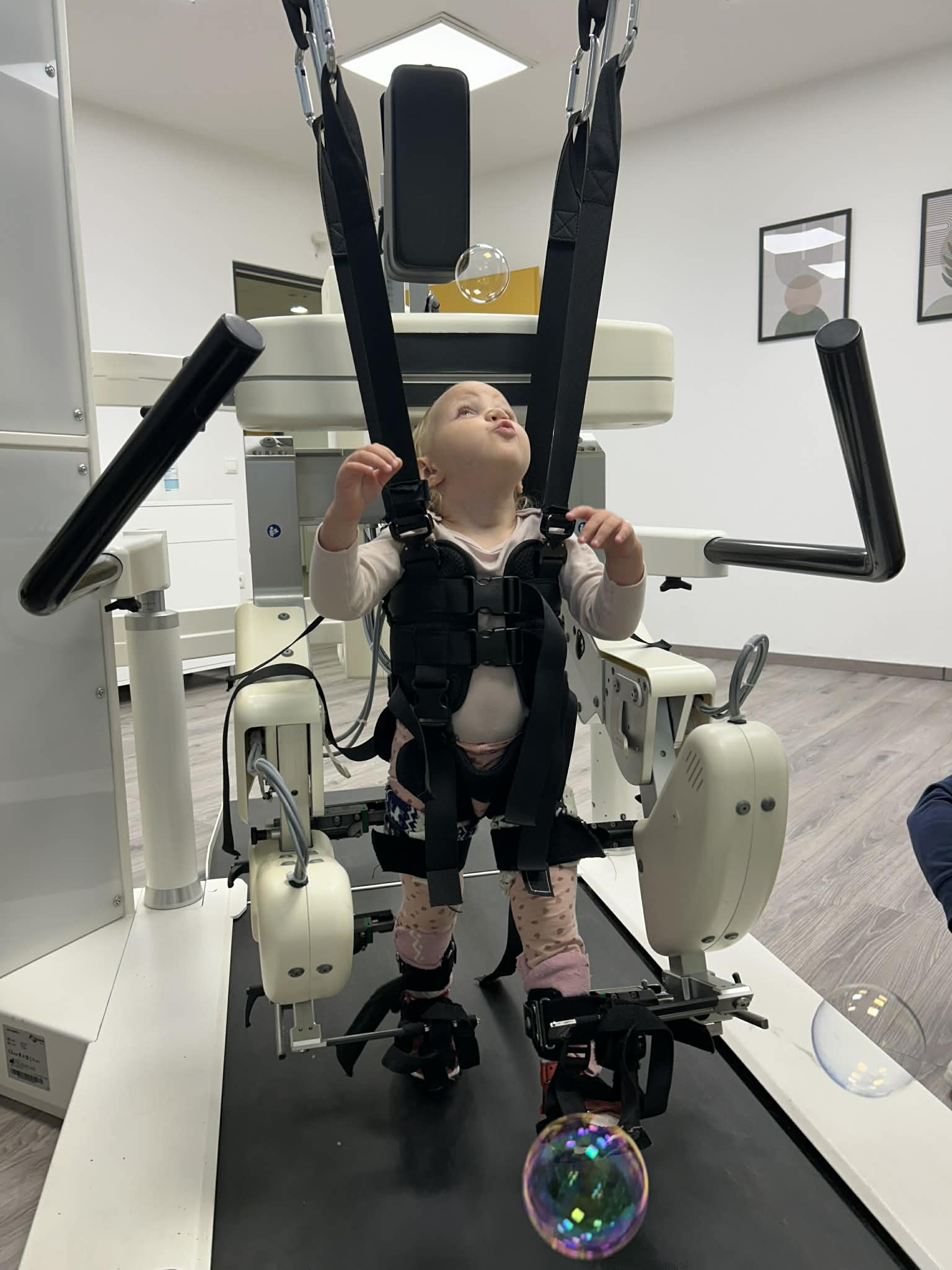 A történet itt új fejezetbe lépett: az életmentést követően a rehabilitáció, a fejlesztés és a fokozatos visszaépülés lett a mindennapok célja. Heti 5 nap robot-asszisztált járássegítő gép, gyógytorna, speciális fejlesztés a család heti programja.