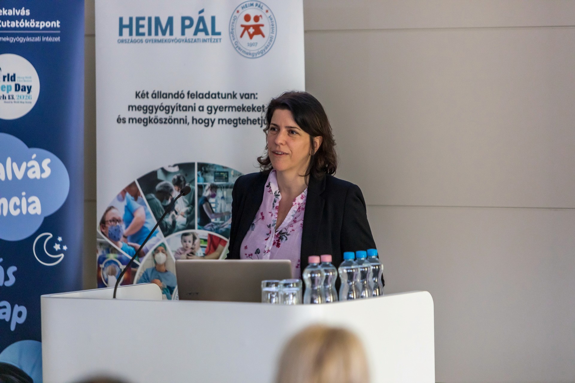 Dr. Száray Eszter „Együttműködésünk az Alváslaborral” című előadásában különösen érzékletesen mutatta meg, hogy a házi gyermekorvosi praxisok és a specializált központok közötti együttműködés milyen fontos szerepet tölt be az alvászavarok időben történő felismerésében és a megfelelő ellátási utak kialakításában. Előadásának különös hitelt adott, hogy korábban maga is a Heim Pál Országos Gyermekgyógyászati Intézet munkatársa volt, jelenleg pedig leánya rezidens orvosként dolgozik az intézetben. A konferenciára egyik betegével érkezett, akinek édesanyja személyes tapasztalatain keresztül számolt be arról, hogyan élték meg az alváslaborban és az alvássebészeti részlegen kapott ellátást. A beszámoló őszintesége és emberi ereje mélyen megérintette a hallgatóságot.