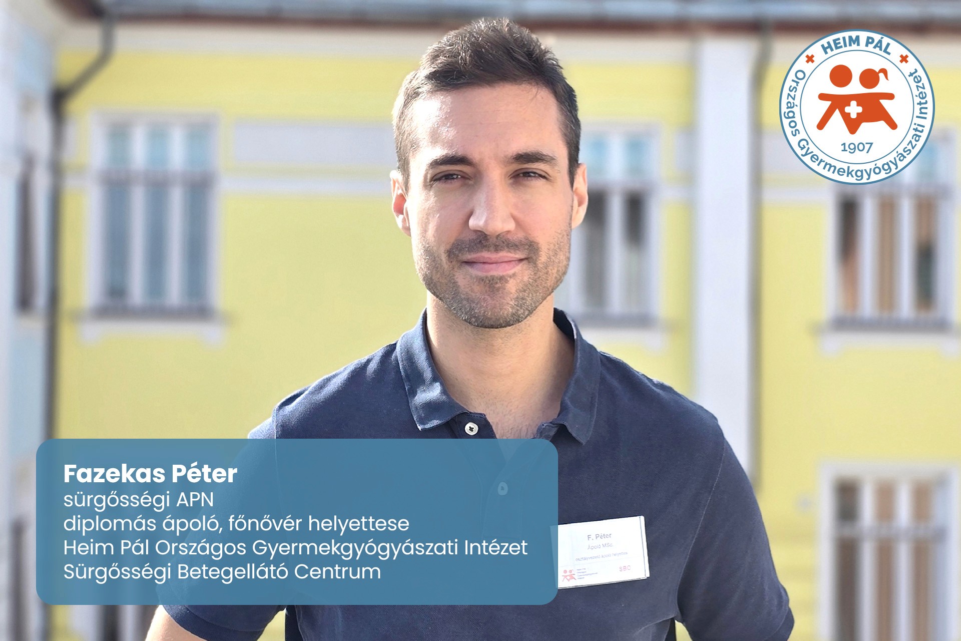 Fazekas Péter, a Sürgősségi Betegellátó Osztály diplomás ápolója és főnővér-helyettese, kilenc éve az osztály egyik legmeghatározóbb szakembere. Segédápolóként kezdett, majd szorgalmával, elhivatottságával és rendkívüli kitartással jutott el oda, ahol ma áll: a gyermek-sürgősségi ellátás egyik országosan is elismert alakjaként.