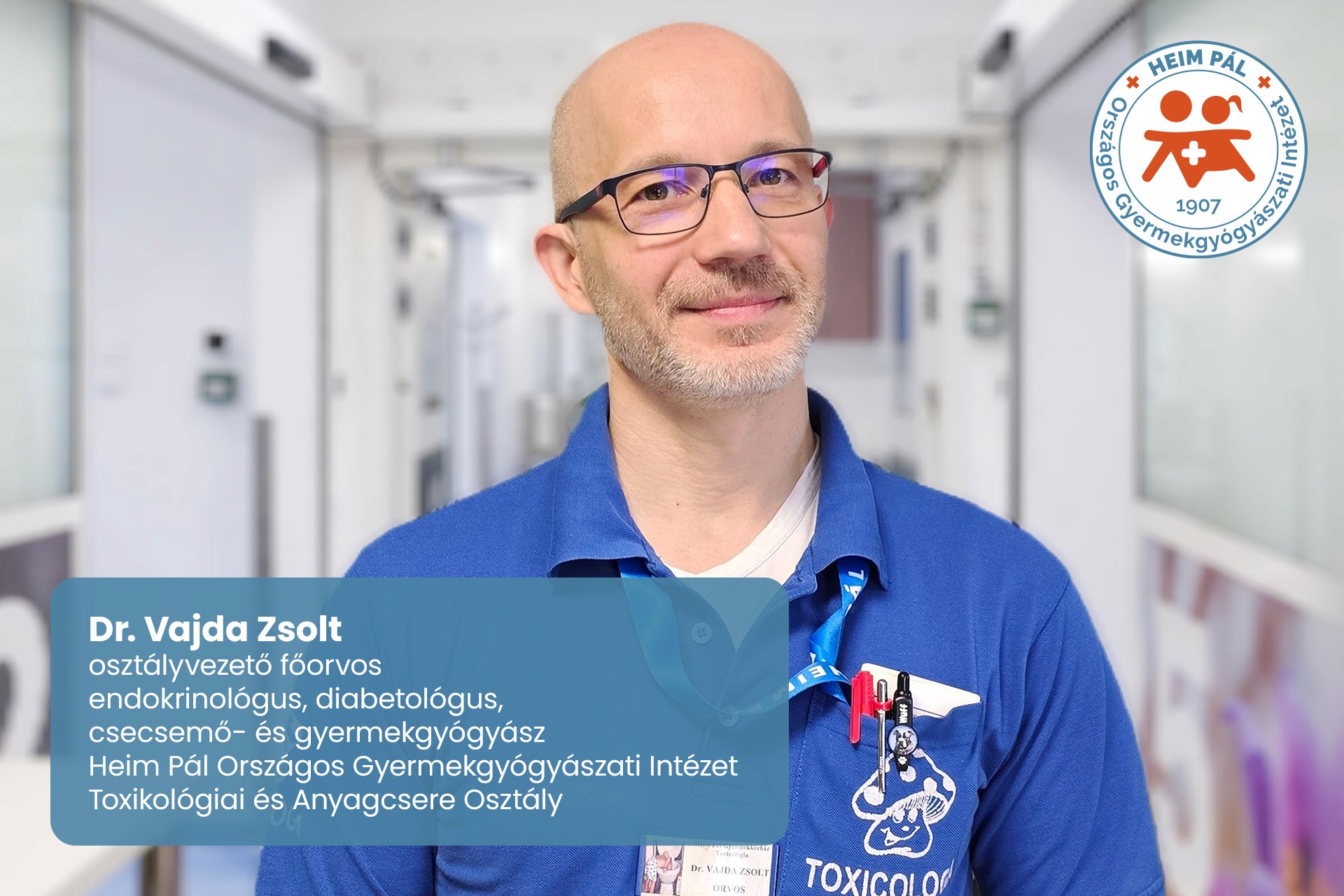 Dr. Vajda Zsolt, a Heim Pál Országos Gyermekgyógyászati Intézet osztályvezető főorvosa a hazai gyermekendokrinológia és gyermektoxikológia meghatározó alakja. Több mint két évtizedes klinikai, oktatói és kutatói tevékenysége nemcsak munkatársai és betegei tiszteletét vívta ki, hanem nemzetközi elismertséget is hozott intézetünknek.